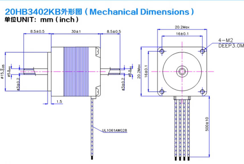 NEMA Stepping motor 28HB3302K (Motor servo 2 đầu trục) |